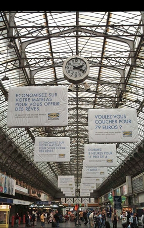 宜家法國公司還嘗試過地鐵站臺(tái)和火車站,他們把后者的廣告牌替換成了自己的床墊。