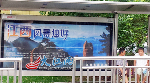 在北京84條核心街道的公交候車亭里都有江西旅游形象廣告。